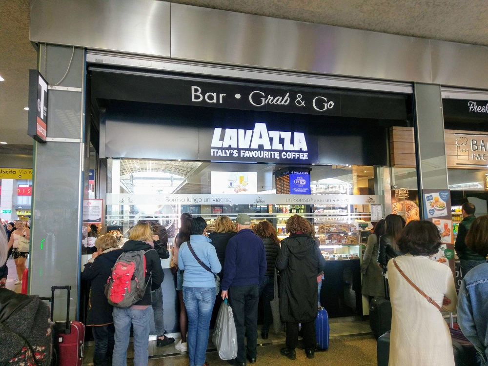 10 am テルミニ駅のラバッツァコーヒーには朝のカフェを求めるたくさんの人が。