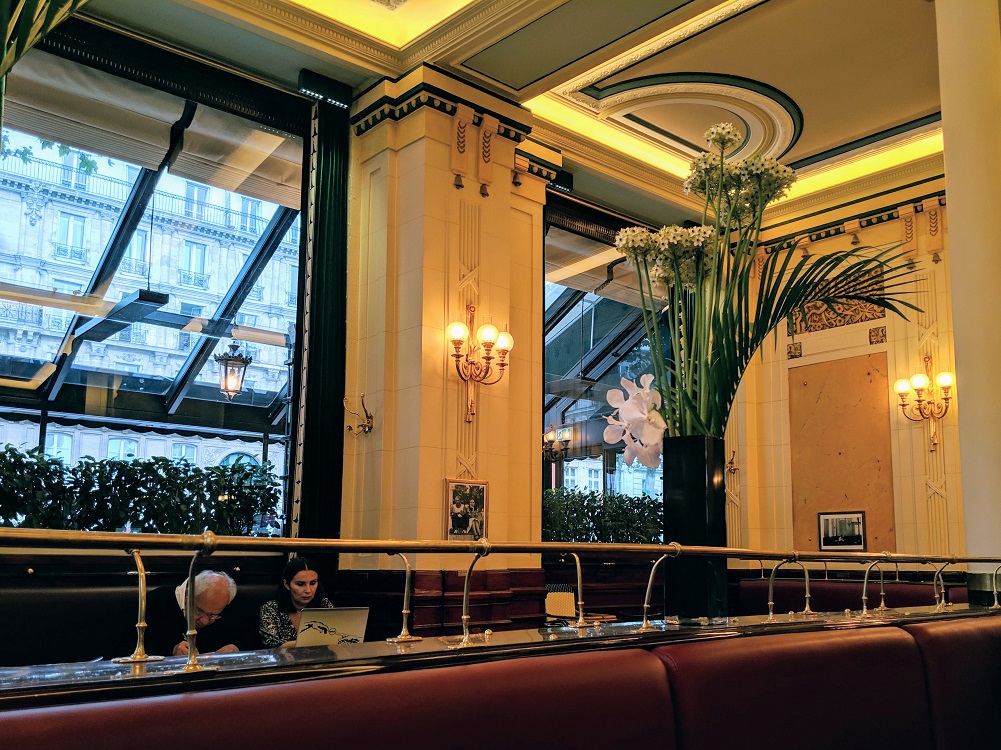 ヘミングウェイやカミュなど、名だたる文豪が足しげく通い今では「哲学カフェ」といも言わているのだとか。前日のカフェ・ドゥ・フロールといい、通っていたという著名人がすごい。