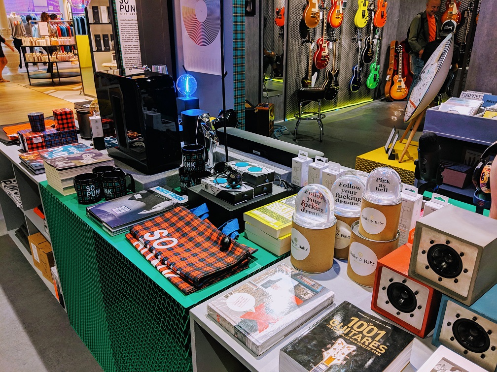 真ん中に写っている「SO PUNK」のチェック柄トートバッグ(20€)を買いました。図書館に行くときに、本を詰めて持っていっています。