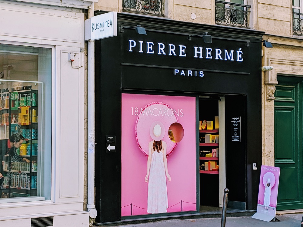 ピエール・エルメ・パリ (PIERRE HERMÉ PARIS) 。フィガロ紙のパリNo.1に輝いたというクロワッサンを買いたかったんですけれど、売り切れでした。残念。お隣はクスミティー (KUSMI TEA) の店です。