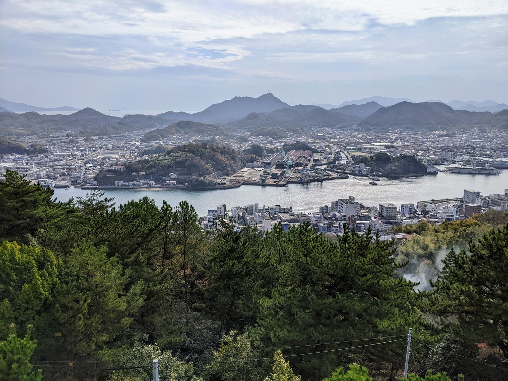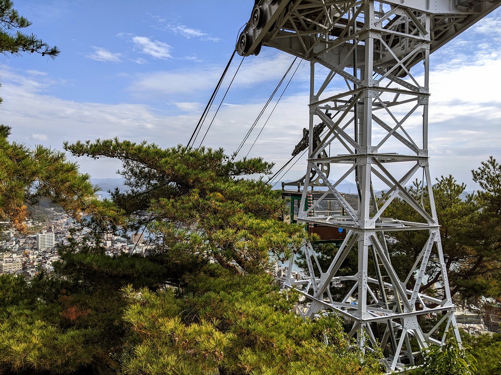 今日はロープウェイは動いていないという。確かに公式ページに「12/1~12/23は運休」と書いてあるではないか。結局、千光寺頂上展望台の近く、ギリギリ車で行けるところまで乗せてもらうことにする。
