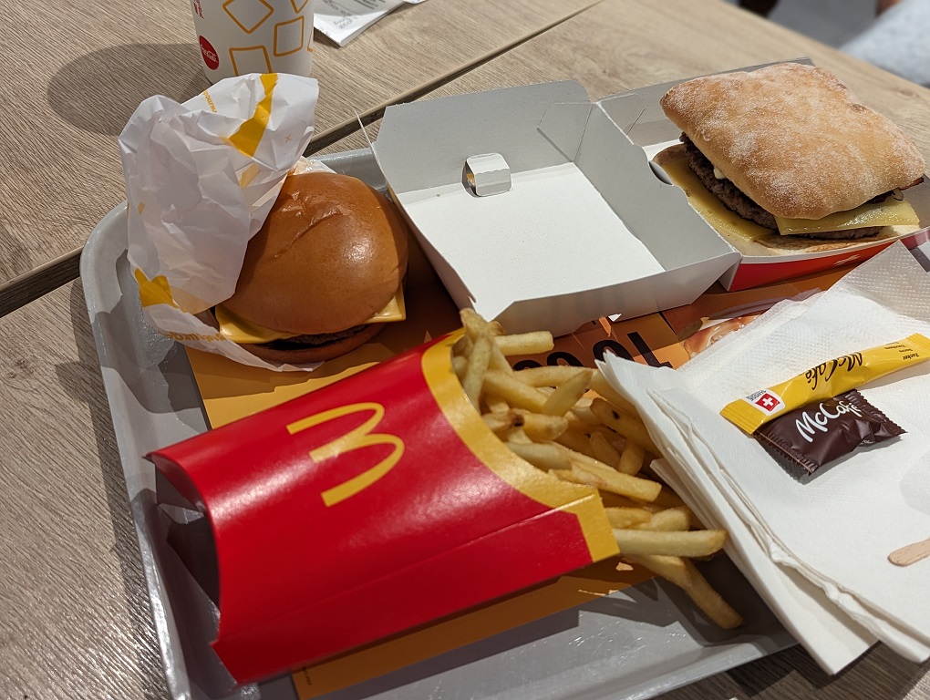 空港の鉄道駅まで移動している途中、フードコートにマクドナルドを見つけました。最後の食事から5時間以上が経過していることもあり、簡単に腹ごしらえをすることにしました。同行している若者は空腹で倒れそうだったので。