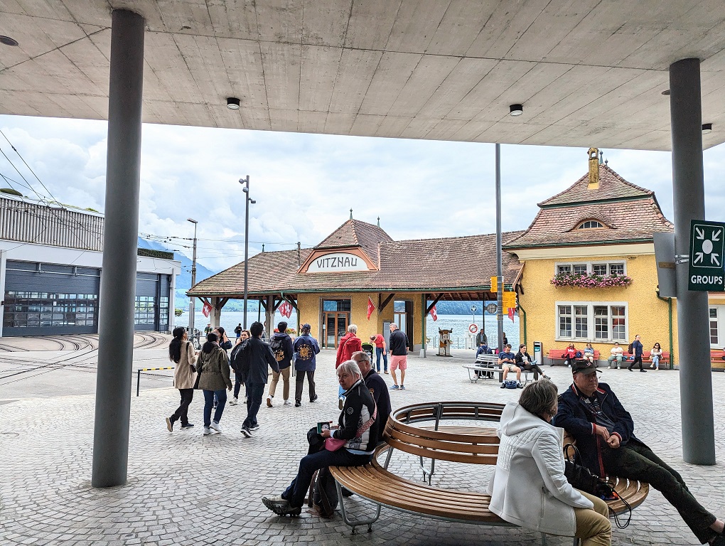 フィッツナウ(Vitznau)までは約30分。駅前にはルツェルン(Luzern)に行くフェリー乗り場があります。