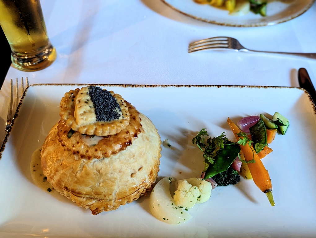 サクサクのパイにナイフを入れると、熱々のクリームソースが出てきて、パイといっしょに食べると美味しいです。結構ボリュームがありますが、今回の旅行は、わたしが食べきれなくても、全部食べてくれる頼もしい人がいるので安心です。