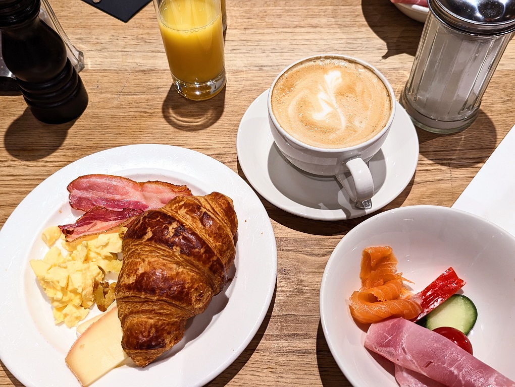 次の日、朝食はホテル内でいただきました。レストランは広々としていました。