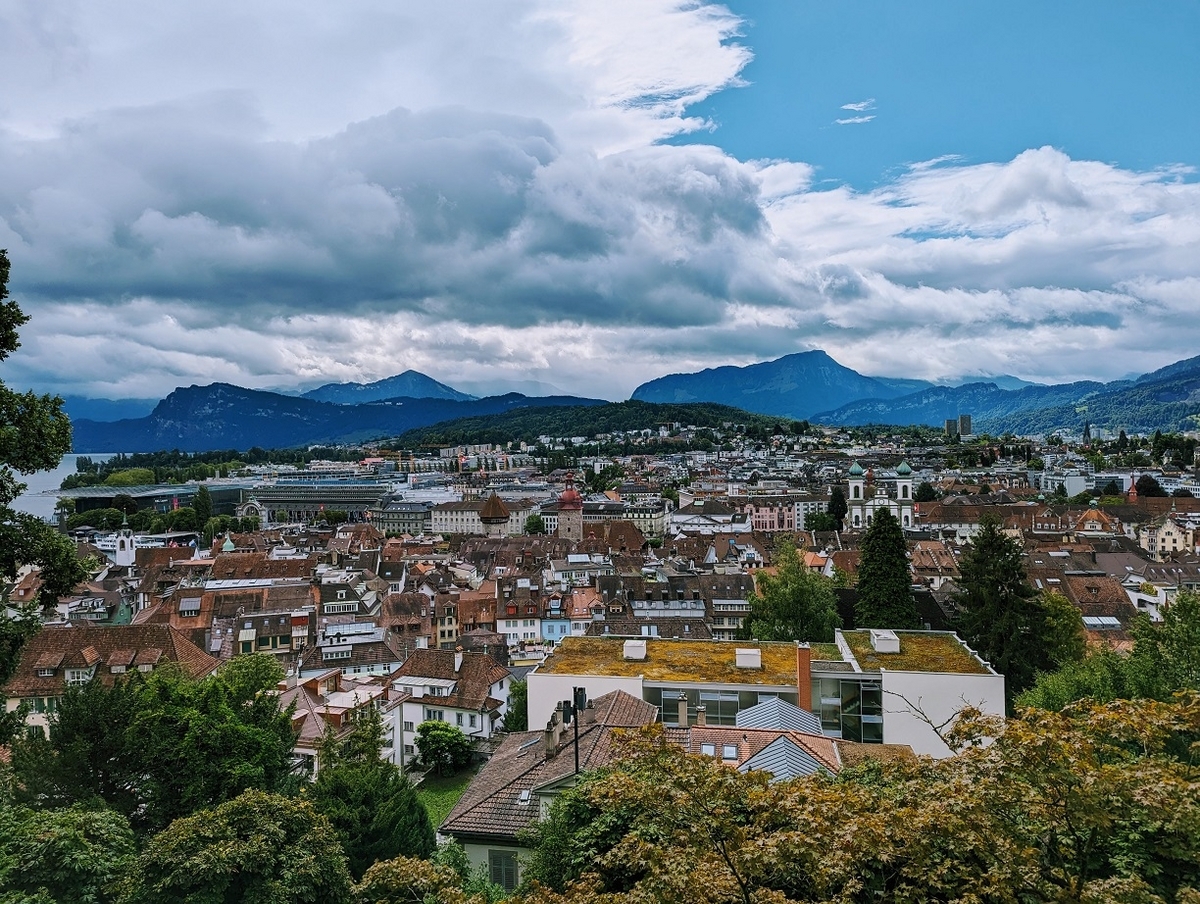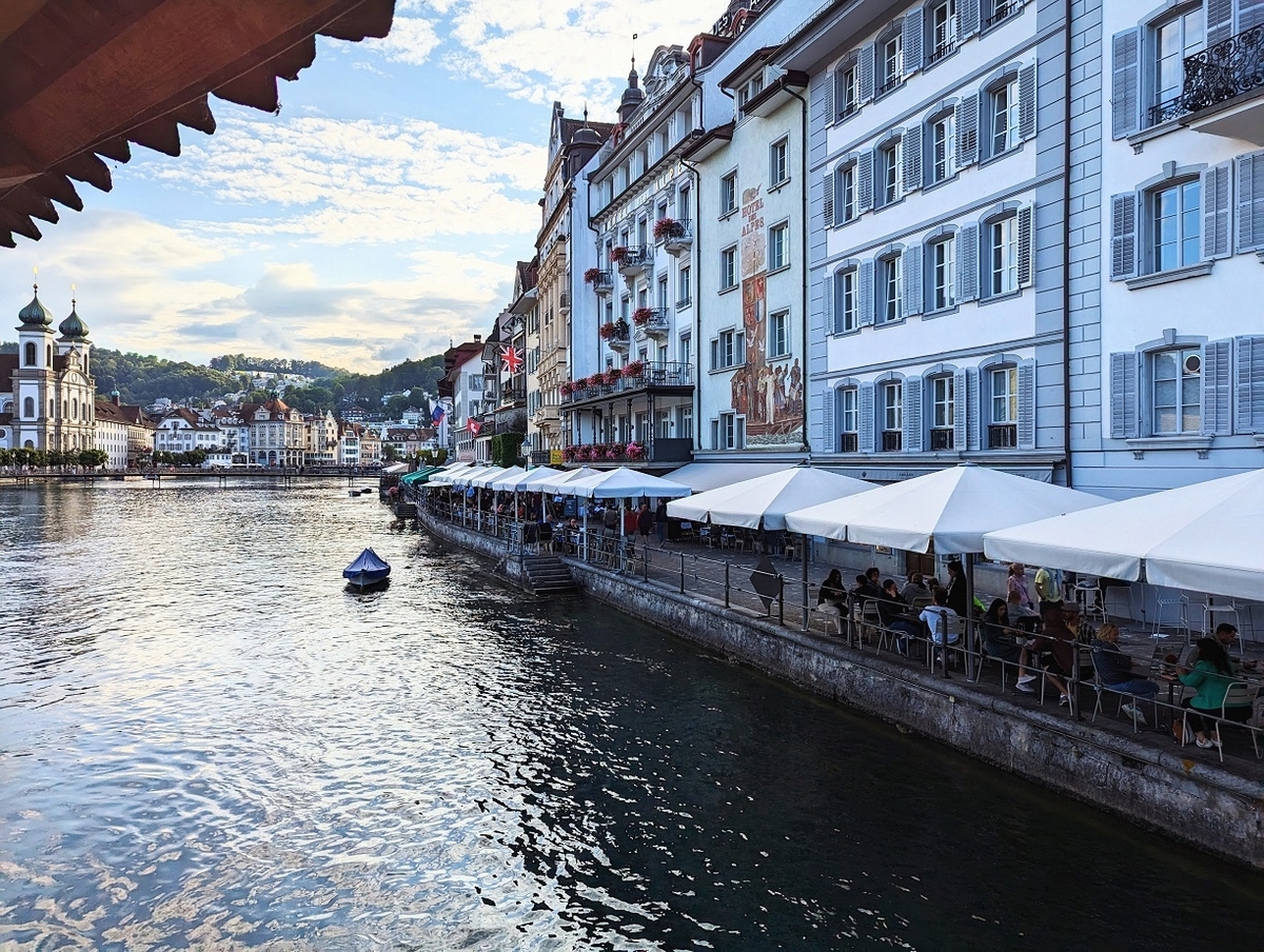 ルツェルンは湖と山に囲まれた美しい街なので、観光客が多そうです。