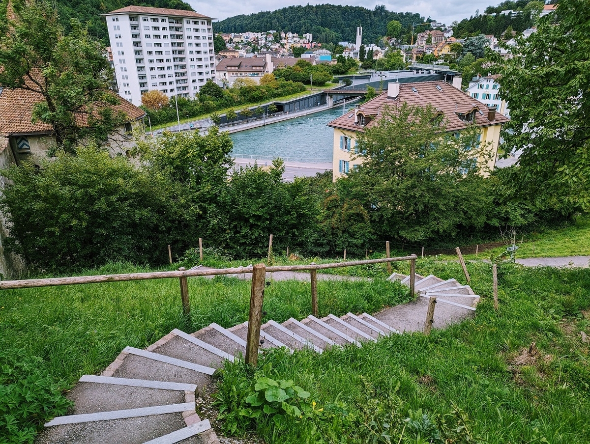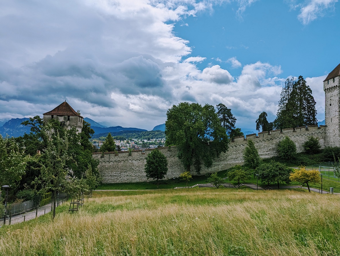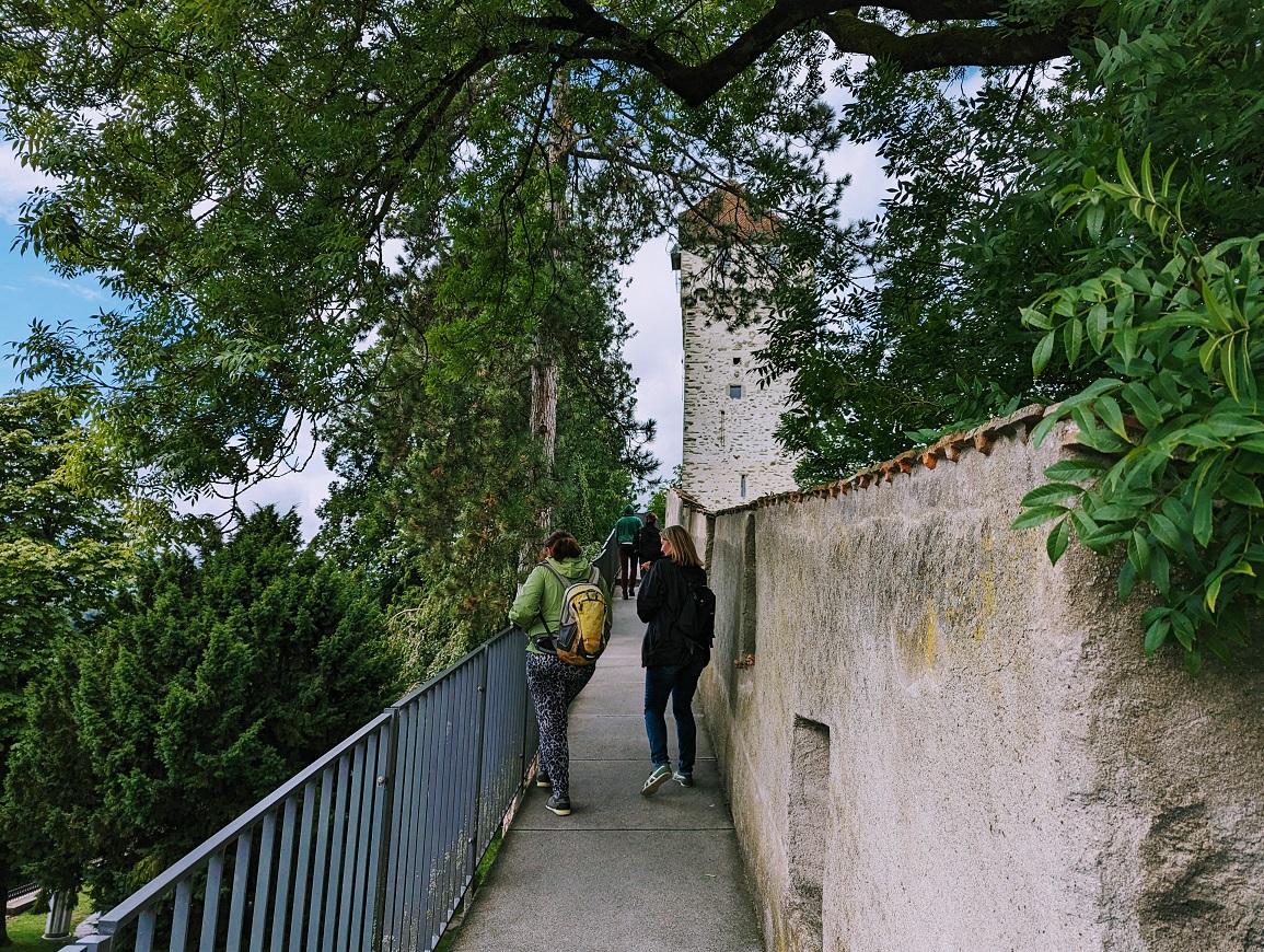 1400年に街を守るために囲むように建てられ、スイスに現存する中では最長だとされる城壁で、塔の上に上ることもできます。