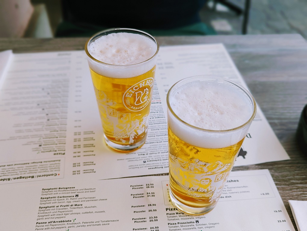 息子は牛フィレ肉のグリル、わたしはルツェルンの郷土料理、ルツェルナー・クーゲリ・パシュテーテ(Luzerner Chügelipastete)という子牛のクリーム煮をパイで包んで焼いたものを注文しました。
