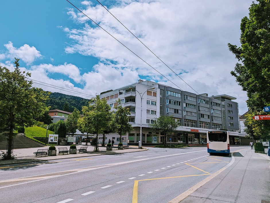 まずは、ルツェルンからロープウェイ乗り場までバスで向かいます。