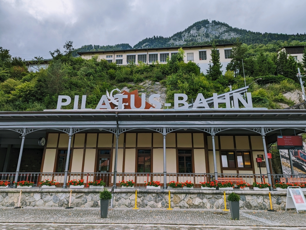 アルプナッハシュタート(Alpnachstad)に到着しました。駅からすぐのところに存在感のあるもう一つの駅があります。