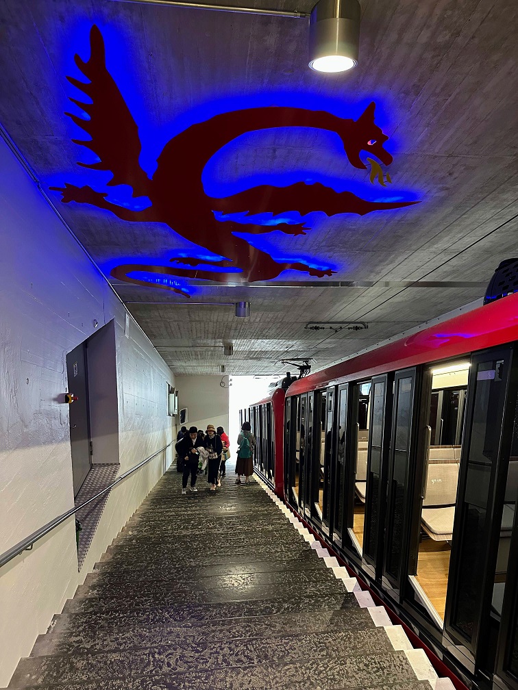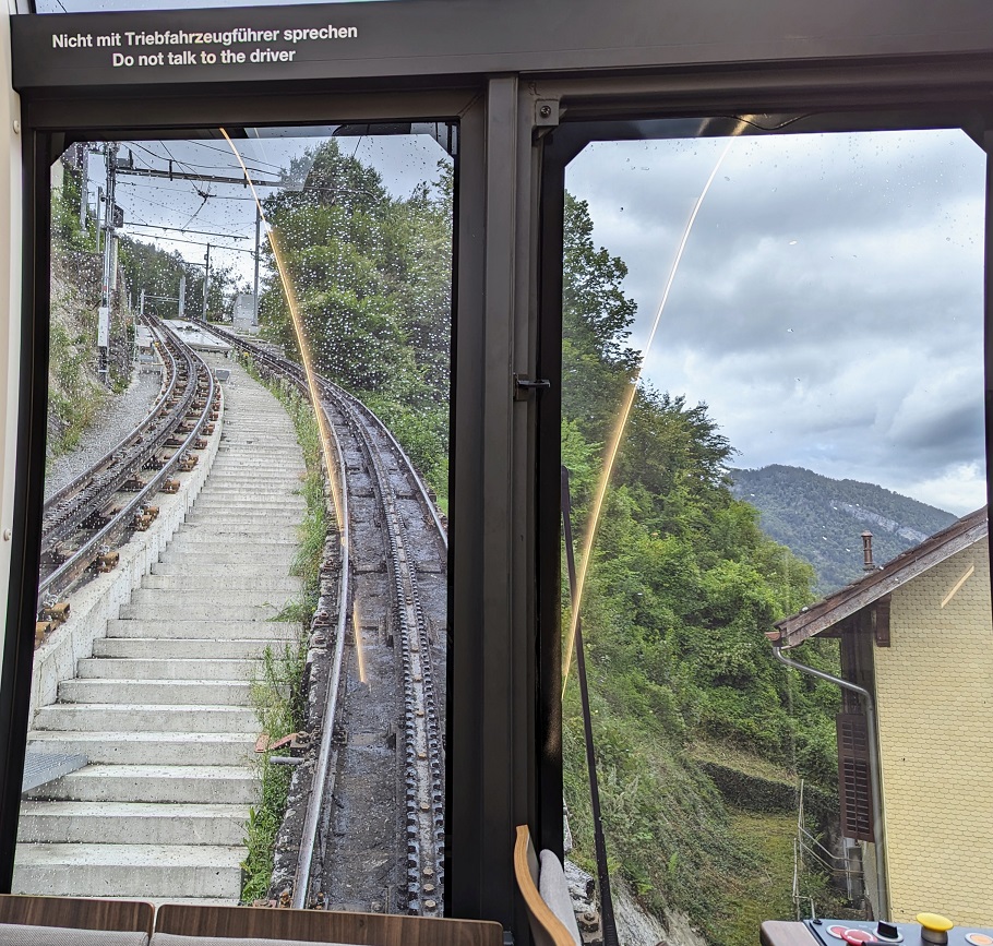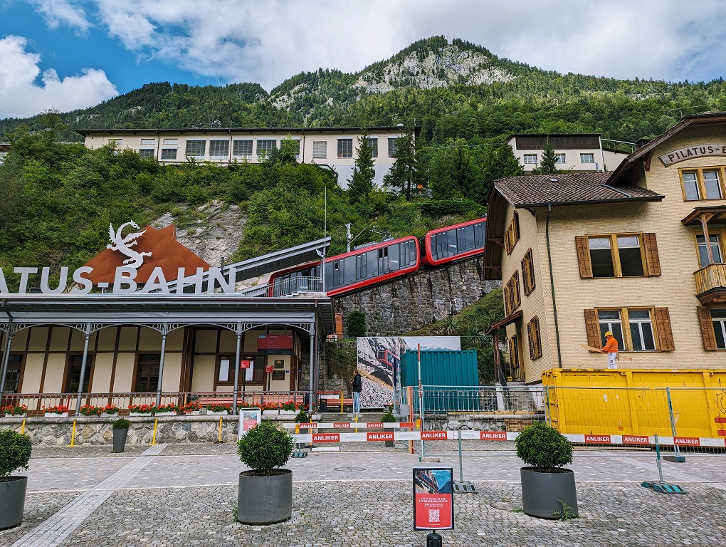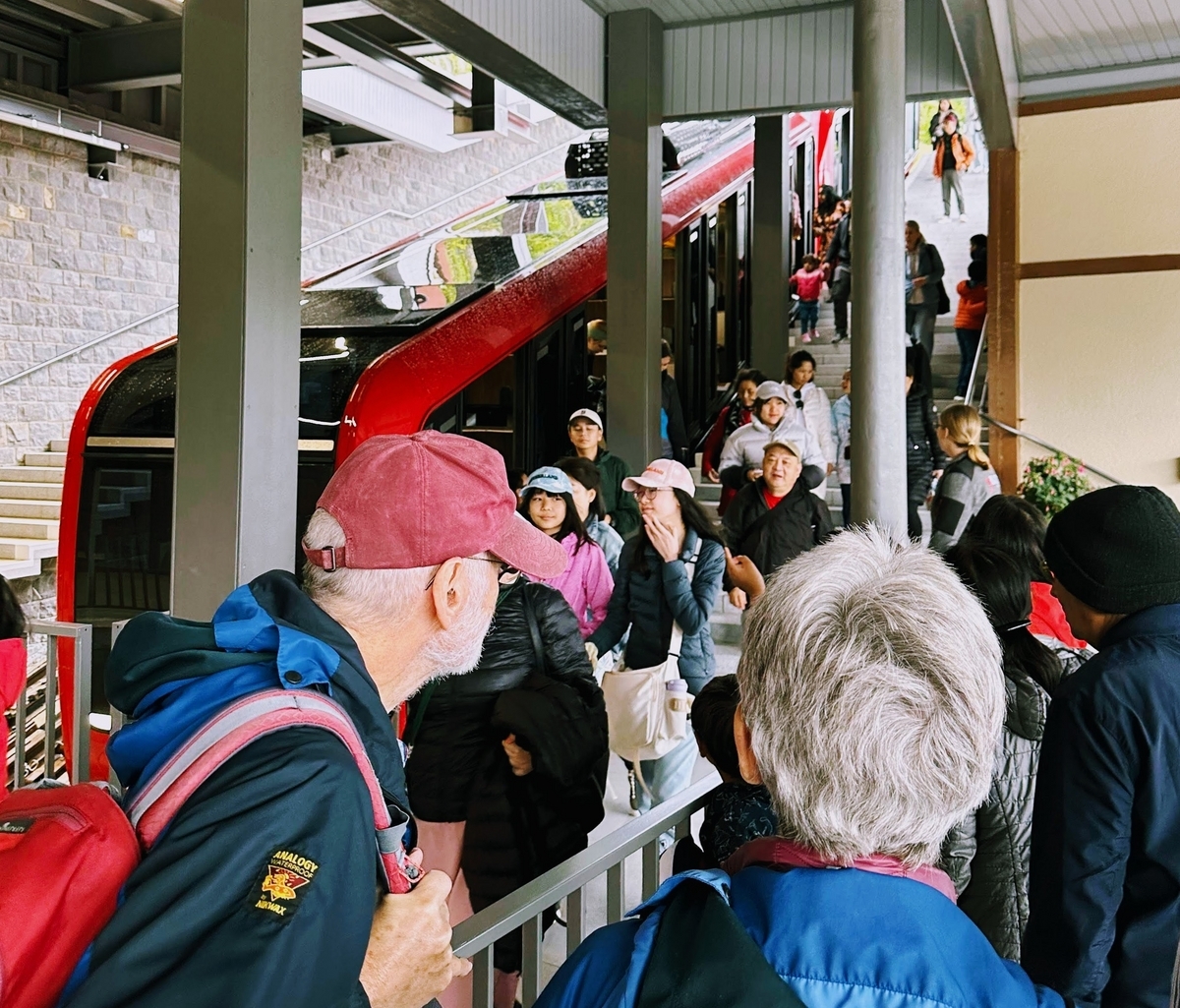 傾斜度最大48%(480パーミル)という世界一急勾配となる歯車登山鉄道の駅です。これに乗って、一気に頂上まで行きます。