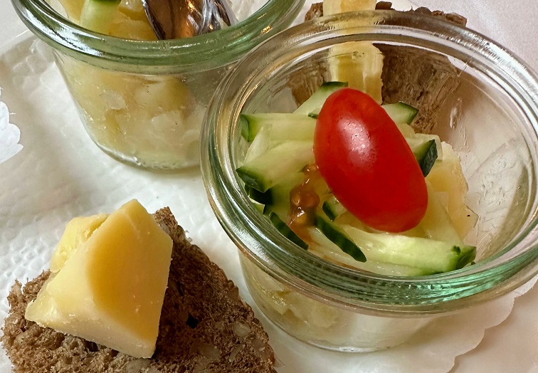 四角いのは2つとも豆腐です。高野豆腐のような感じでした。豆腐の代わりにサーモンが使われている料理も選べます。