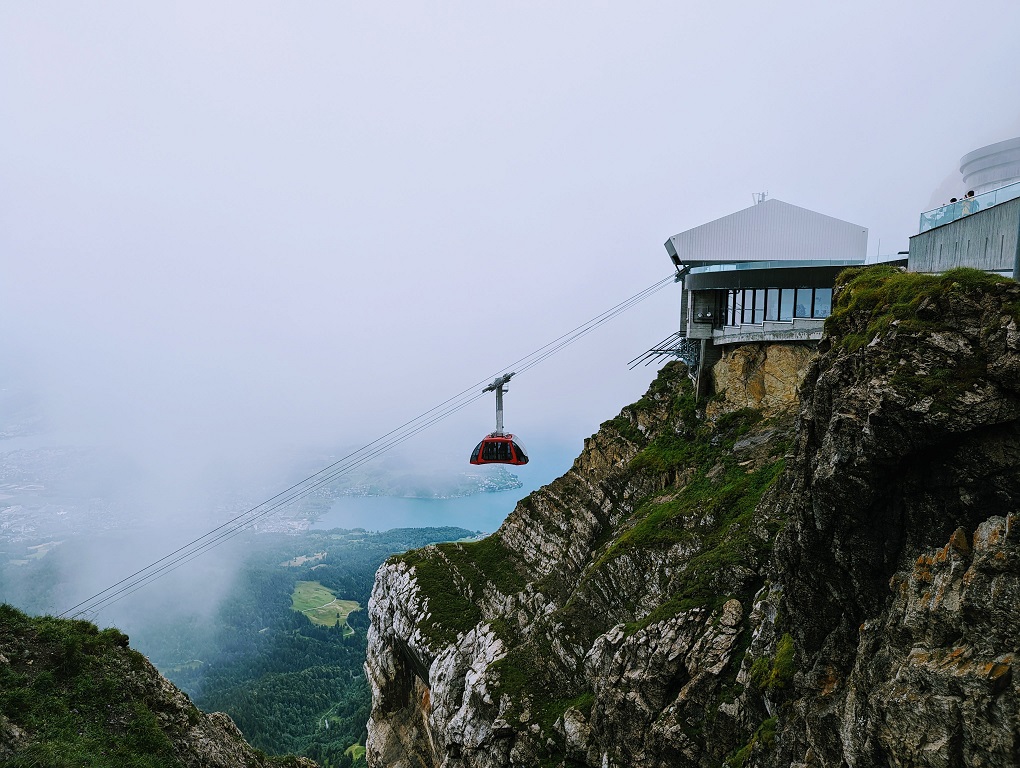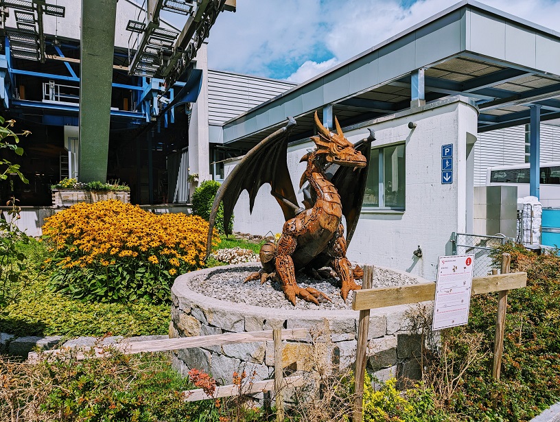 ようやくドラゴンライドへの乗り継ぎ地点フレックミュンテック(Fräkmuntegg)に到着したと思ったら、係員から驚愕の言葉が告げられます。「ここから上はクローズしています」と。「ここ」とは、あと4分で頂上に行ける地点です。