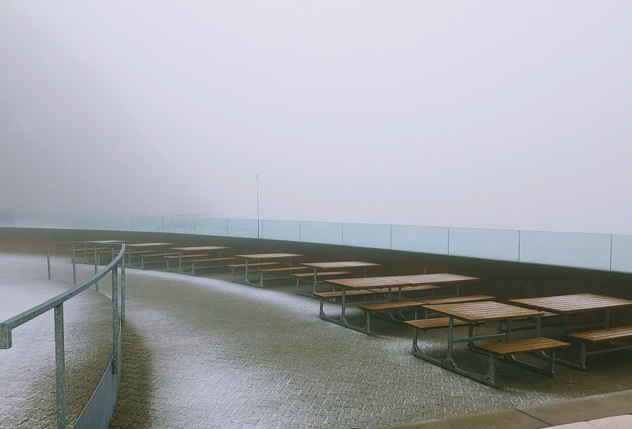 こんな感じです。視界が悪く、誰もいません・・!気温は0度くらい?