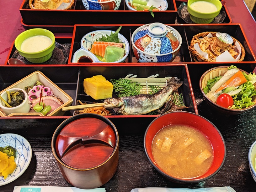 13時50分頃、到着。松花堂弁当がすでに用意されていました。今回の旅行で一番美味しかったです。
