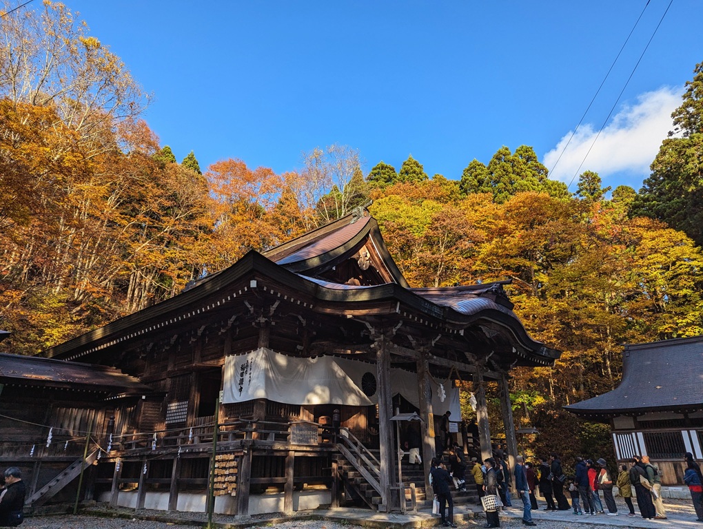 奥社への行列です。参道からここまで約140mの標高差があるそうなので、結構上ってきたのがわかります。
