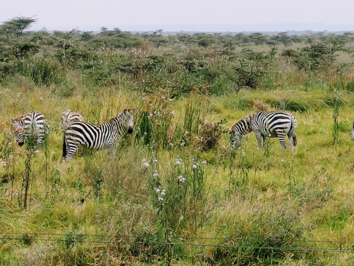 待っていてくれたクルマに乗り込み、宿泊するホテルまで向かいます。空港を出るとすぐにナイロビ国立公園が広がります。ナイロビの高層ビル群を背景に、サバンナで動物が歩いている光景はここでしか見られません。