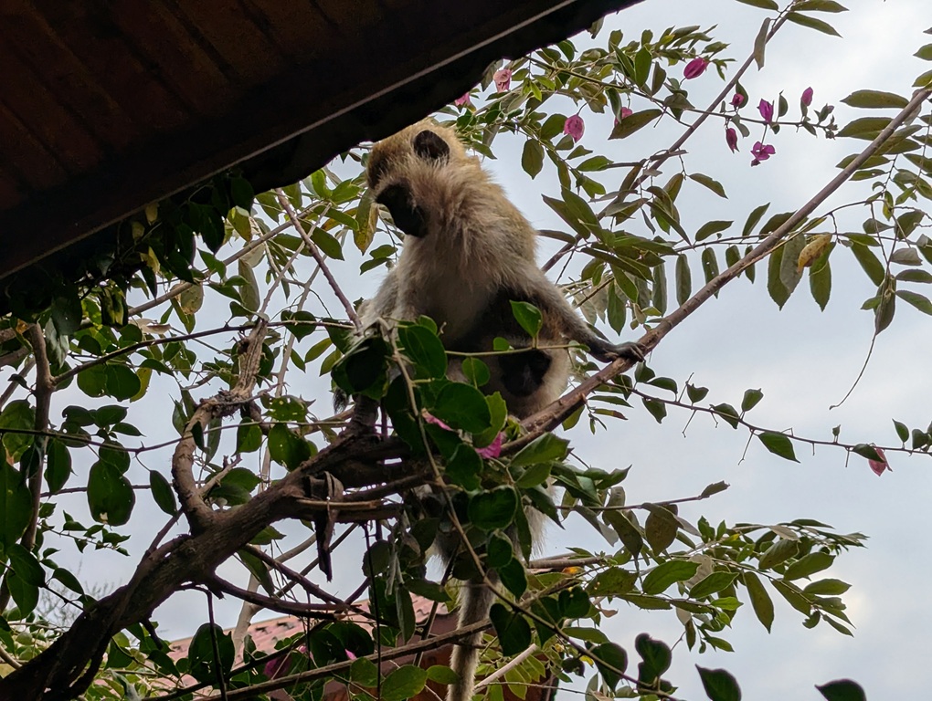 ロッジの敷地内にはベルベットモンキーがいました。上の写真は子どもで兄弟?