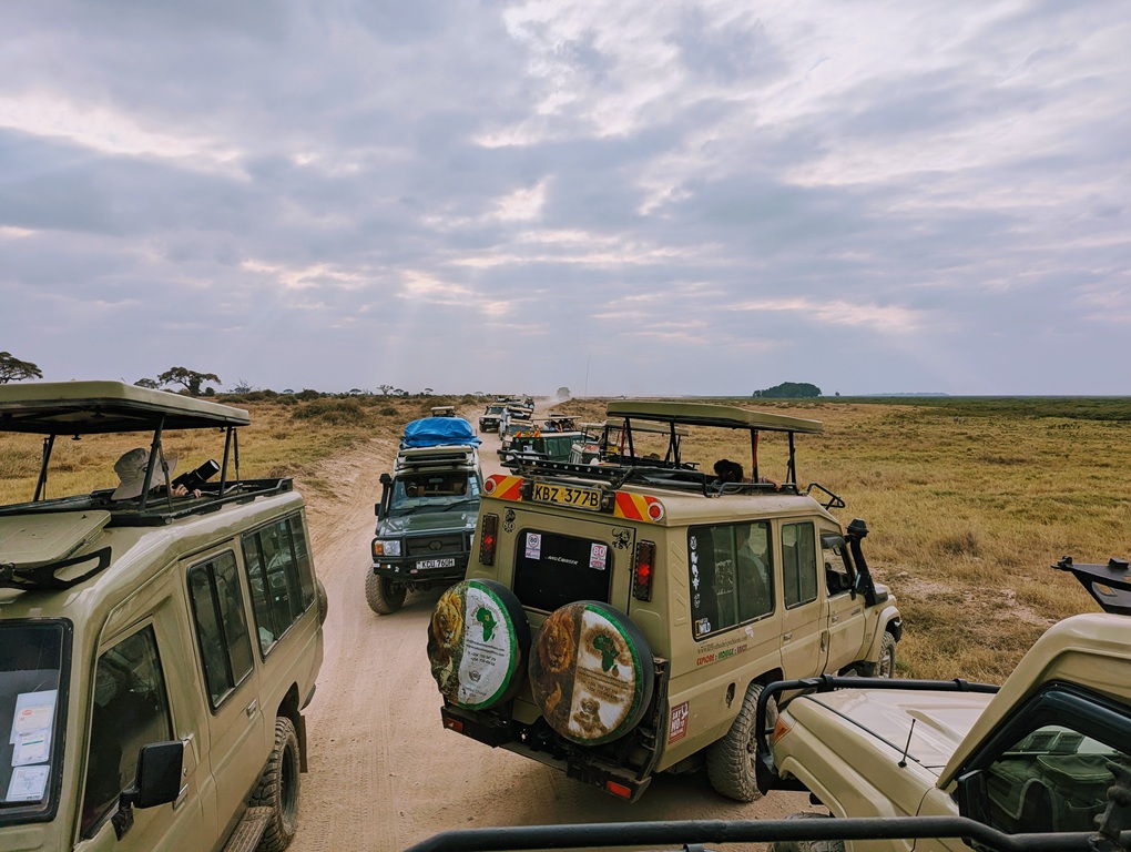 翌日はトヨタのオープントップタイプのサファリカーに乗り換え、アンボセリに移動します。クルマは全部で3台、3人のドライバーさんが最終日まで運転を担当します。